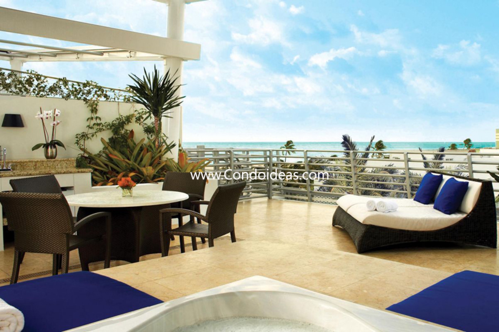 700 sq.ft. private rooftop gardens with wet bar and roman hot tubs for all penthouse units