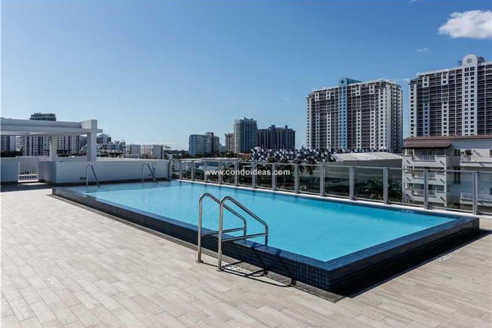 Rooftop swimming pool with sun deck featuring views of biscayne bay and south beach