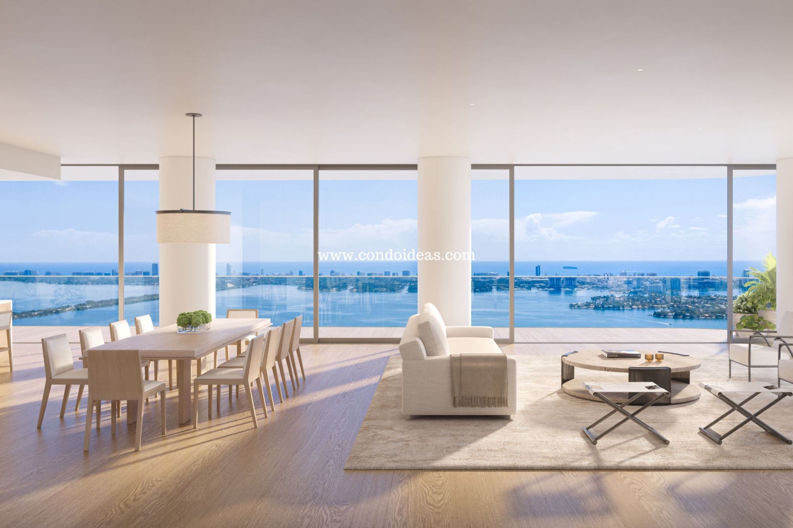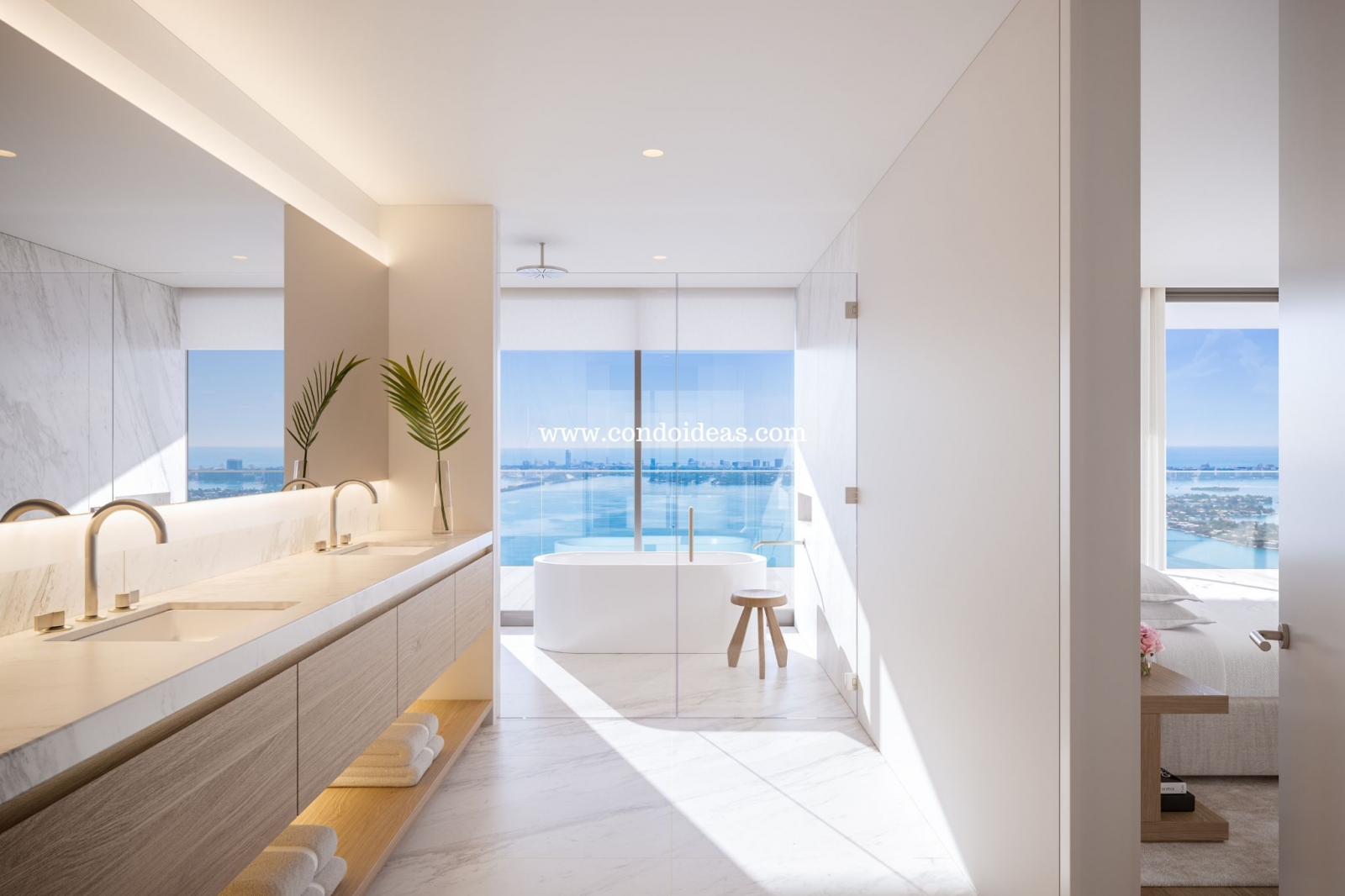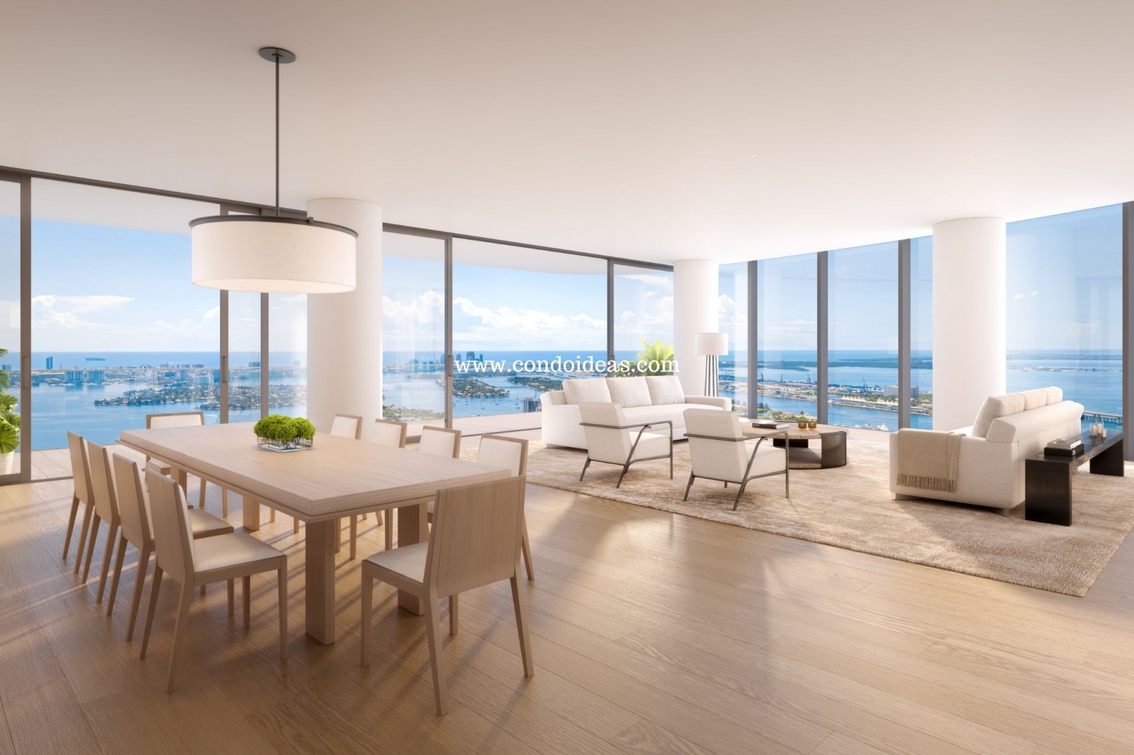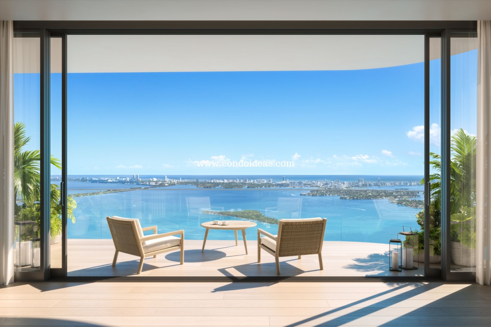 Up to 12-foot deep terraces with panoramic views of Biscayne Bay, Downtown Miami, Miami Beach, and the Atlantic Ocean