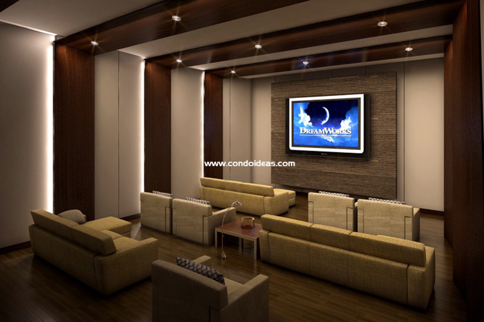 Private screening room with state of the art audio visual equipment and theater-style seating