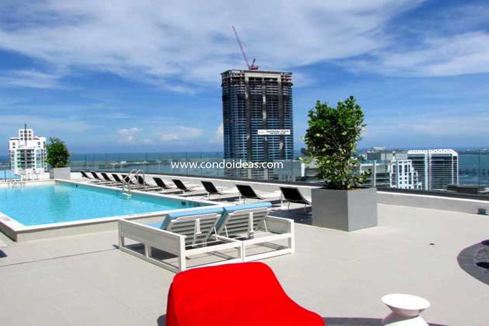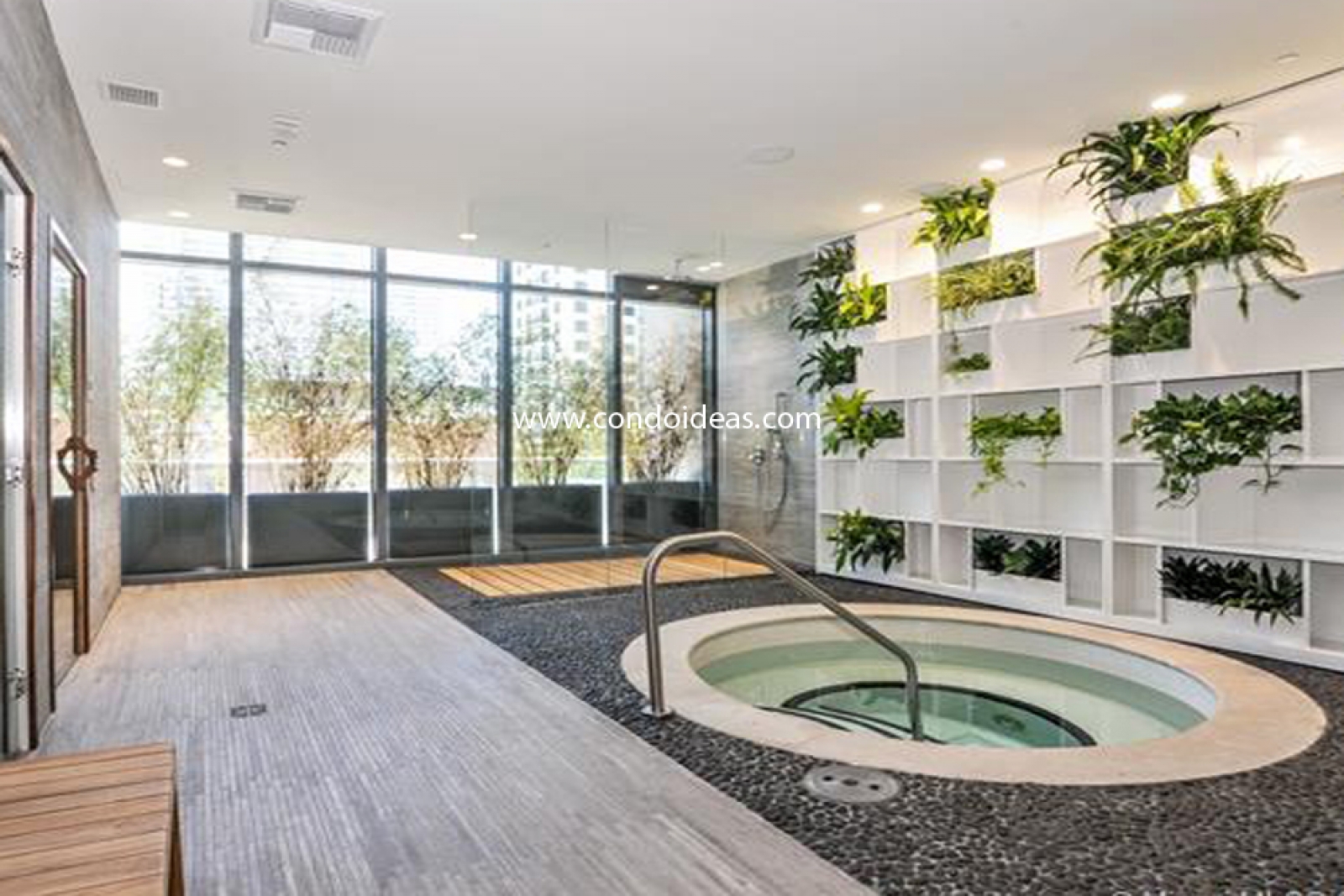 Luxuriously landscaped Pool terrace at the 8th floor with three pools including a lap pool for Equinox members