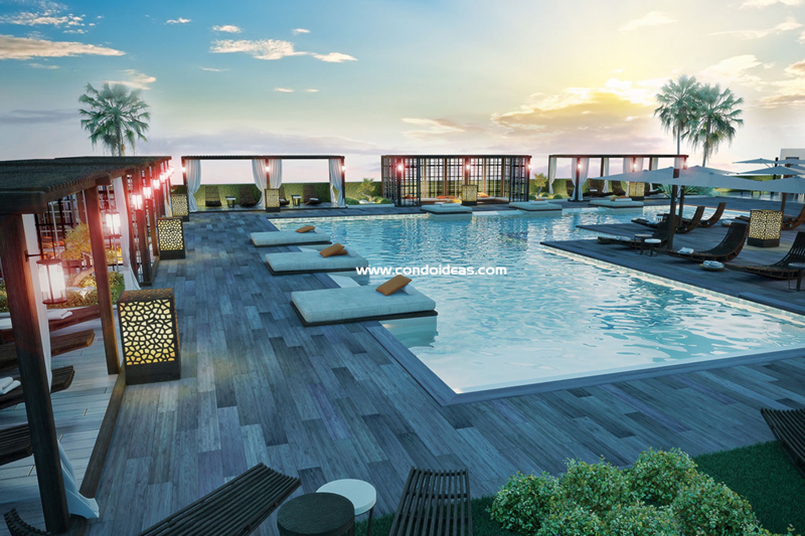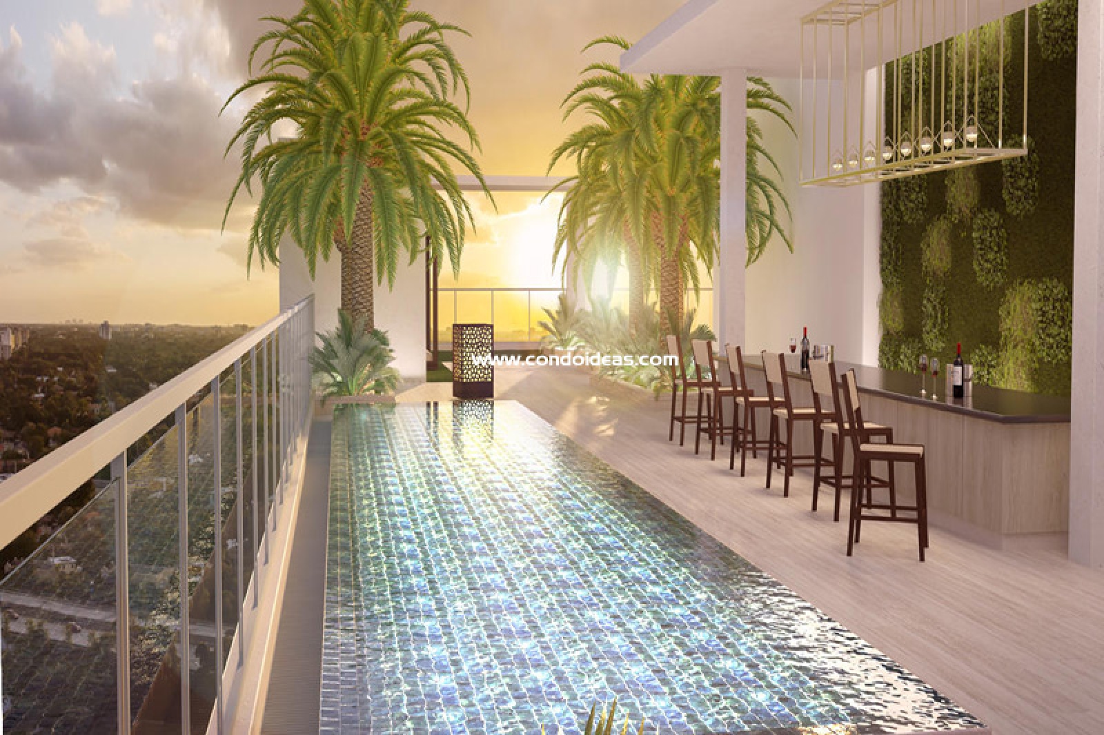 1,600 square foot corner swimming pool overlooking the city