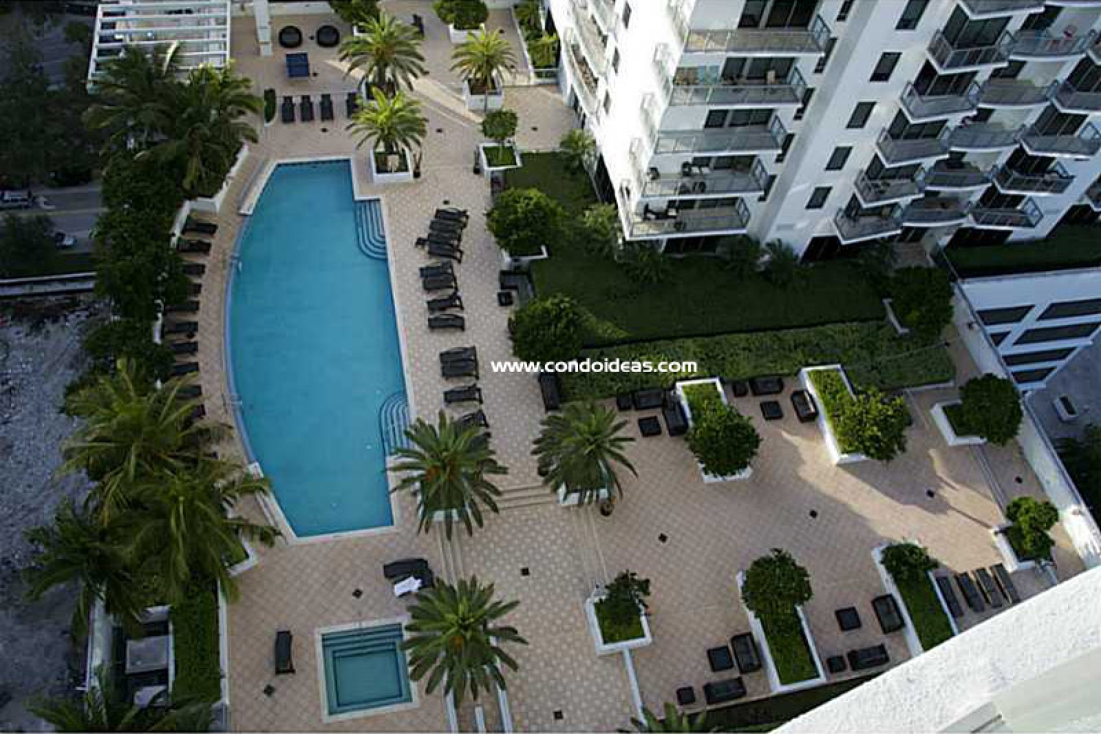 Lushly landscaped resort deck