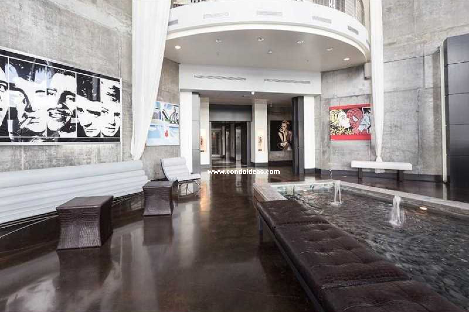 Exposed concrete, block, glass, and steel