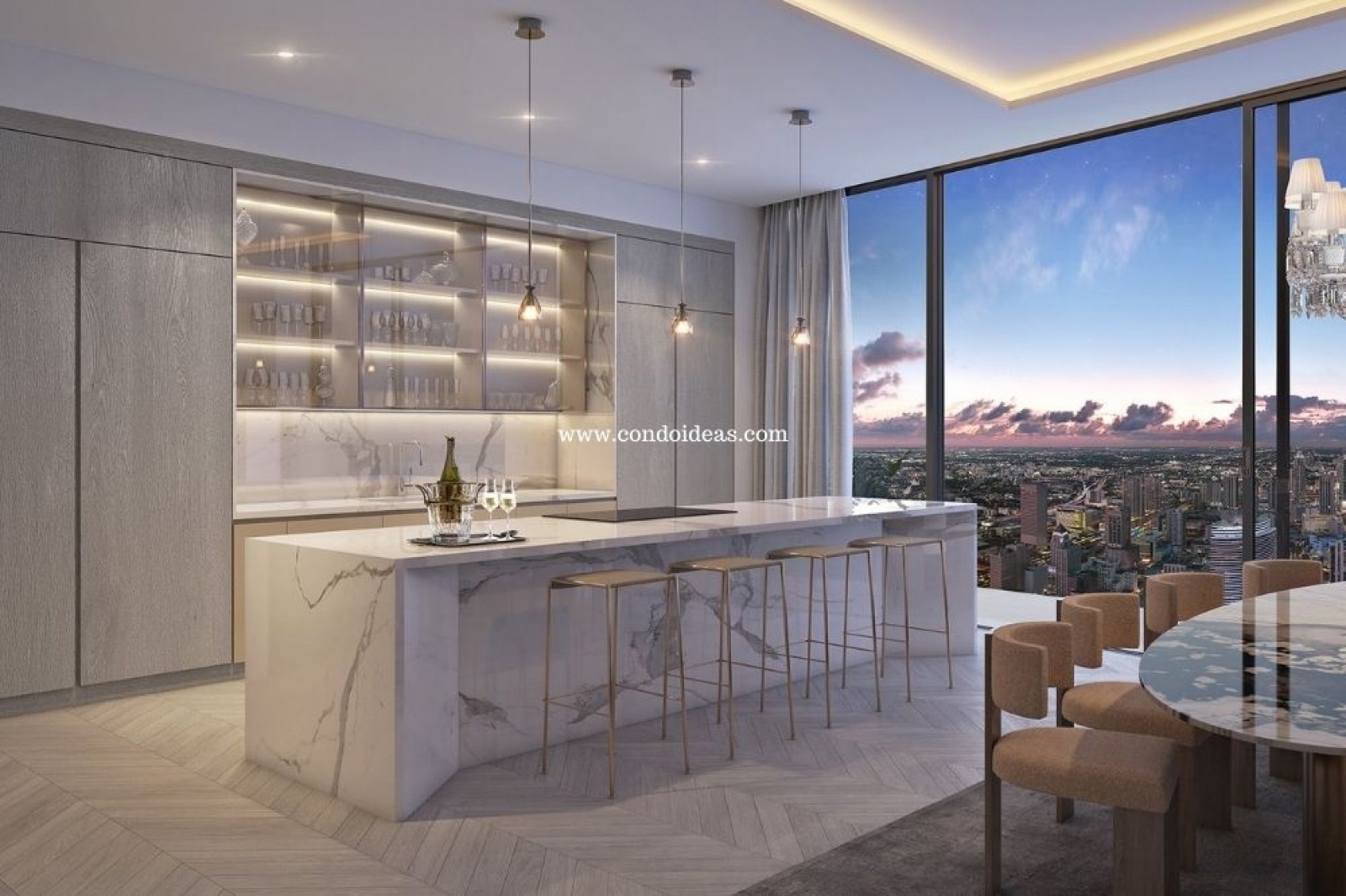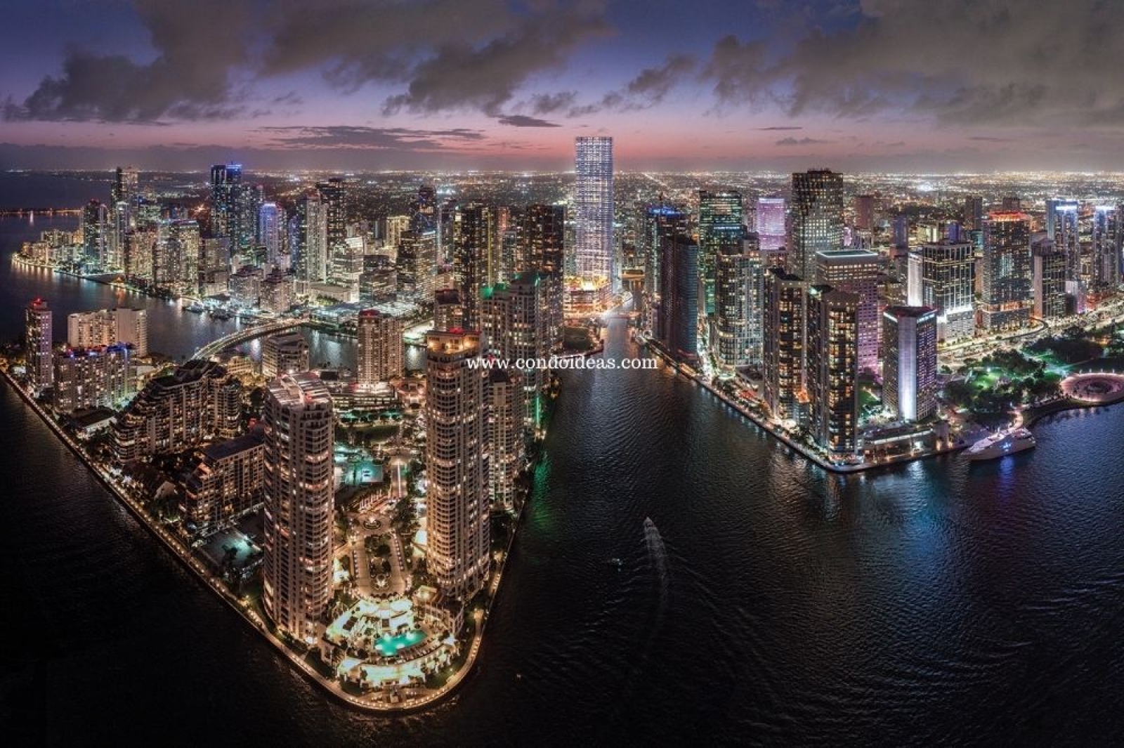 Views of Biscayne Bay,the Miami River and the city lights & skyline